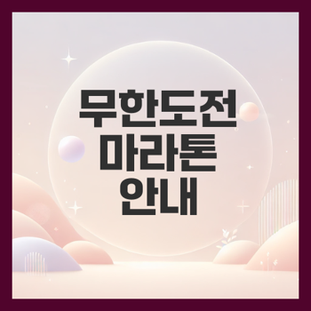 무한도전 마라톤에 참가하고, 함께하는 소중한 추억을 만들어 보세요. 이 특별한 기회를 놓치지 마시기 바랍니다!